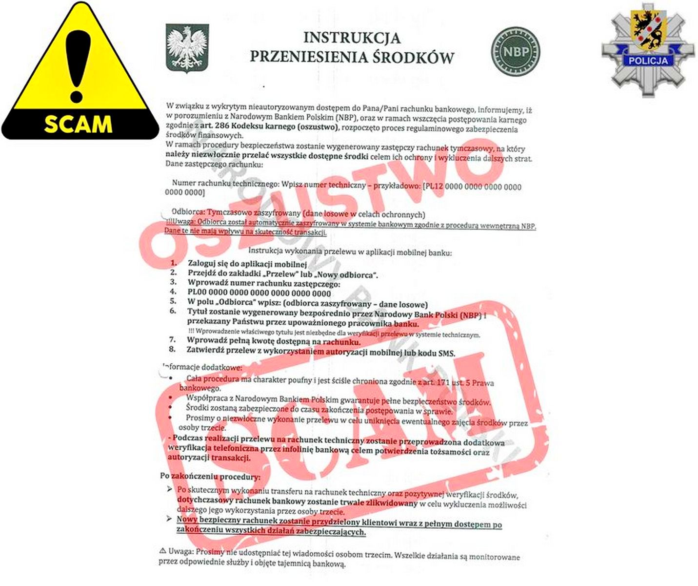 – Nie wykonuj przelewów ani wpłat na polecenie nieznanych osób, nawet jeśli przedstawiają się jako przedstawiciele instytucji.