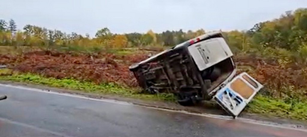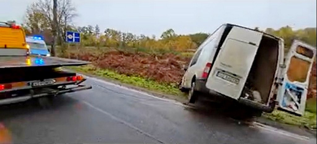 Ze wstępnych ustaleń funkcjonariuszy wynika, że 36-letni kierujący samochodem marki ford transit, jadąc w kierunku Kisewa, najprawdopodobniej nieprawidłowo wykonał manewr wymijania, zjechał na pobocze przewracając się na drodze, w wyniku czego uderzył w prawidłowo jadącą skodę fabię, kierowaną przez 59-latkę, która jechała w kierunku Brzeźna Lęborskiego.