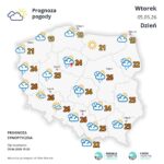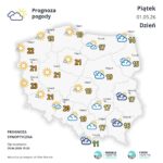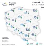 Bezchmurnie lub zachmurzenie małe. Temperatura minimalna od 2°C do 5°C, nad morzem około 6°C. Miejscami przygruntowe przymrozki do około -2°C.