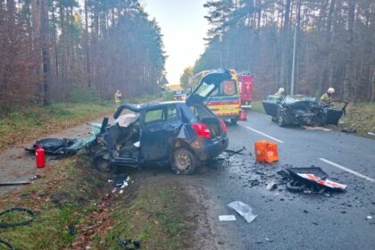 Niebezpiecznie na drodze między Luzinem a Kębłowem. Czołowo zderzyły się dwa samochody [ZDJĘCIA]